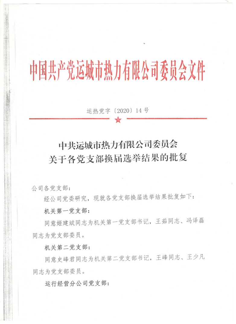 關(guān)于各黨支部換屆選舉結果的批復