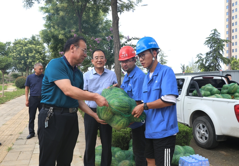 7月16日,盛夏初伏,公司黨委書(shū)記、董事長(cháng)馬福森帶領(lǐng)班子成員深入工程工地、維,F場(chǎng)、管材生產(chǎn)一線(xiàn),看望慰問(wèn)奮戰在高溫下的一線(xiàn)員工們,向大家表示親切的慰問(wèn)和崇高的敬意,同時(shí)給大家帶去了夏季防暑降溫品,帶去公司黨委領(lǐng)導的關(guān)懷。